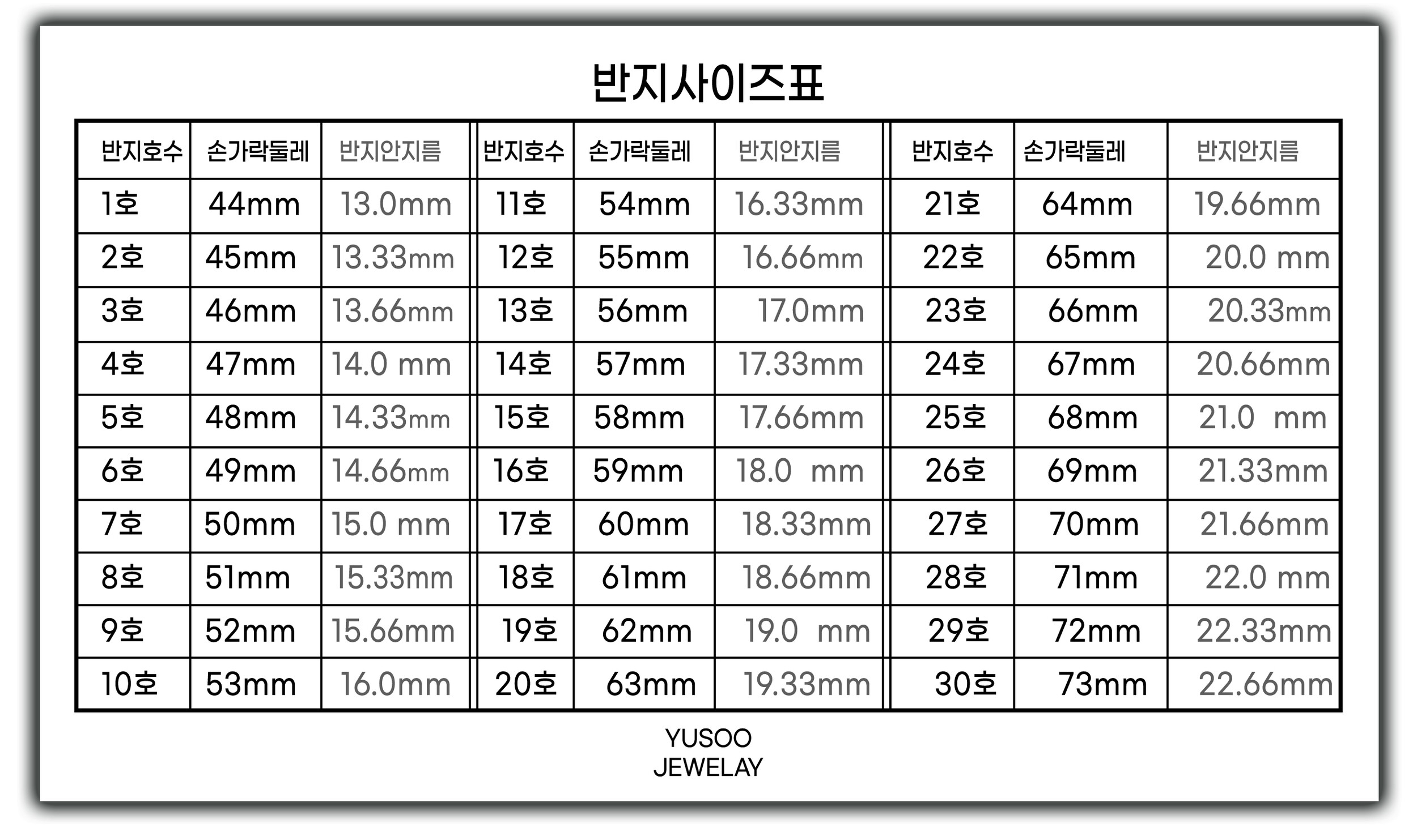 반드시 반지 사이즈 가이드를 확인해 주시기 바랍니다.